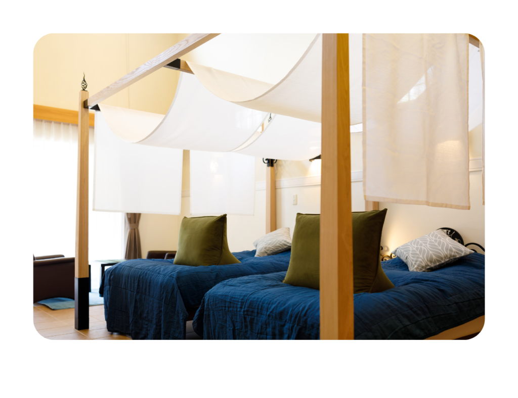 トイレ付きの個室ベッドルームが3室。プライベートを保ちながら、グループでも快適にお過ごしいただけます。